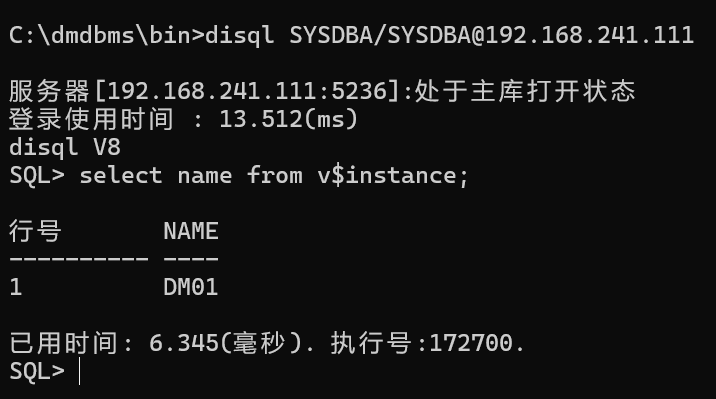 output=$(su - dmdba -c "disql ${DB_USER}/${DB_PASSWORD}@${DM_HOST}:${DB_PORT} -E \"SELECT MODE\\\$ FROM V\\\$INSTANCE;\" 2>&1")