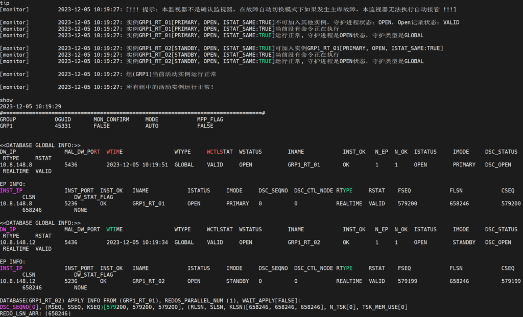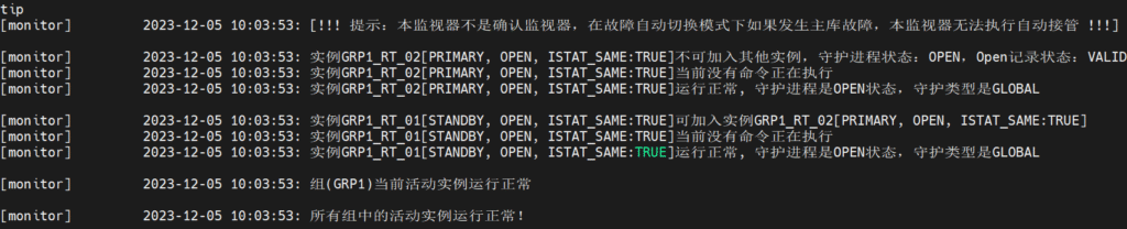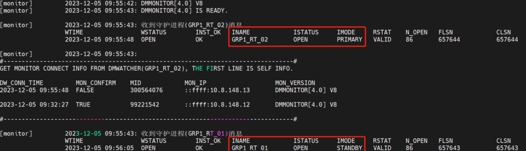 [dmdba@~]$ /opt/dmdbms/bin/dmmonitor /opt/dmdbms/bin/dmmonitor.ini