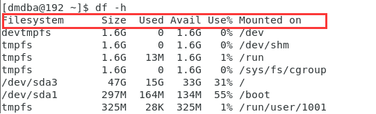 使用命令 df -h 可检查本地磁盘使用情况,如下图所示: