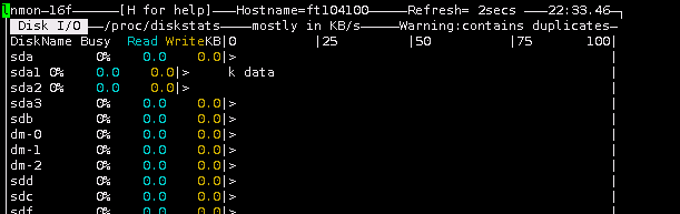 执行 ./nmon 进入,按 d 即可实时显示磁盘 IO 情况。