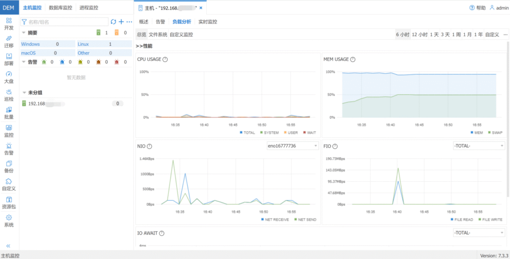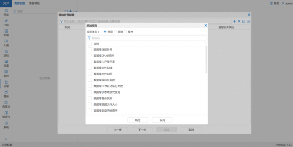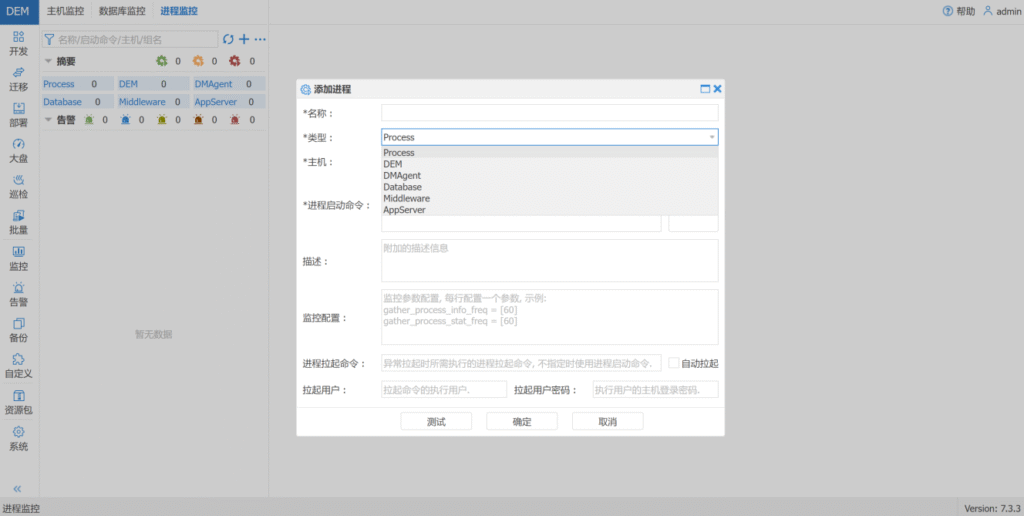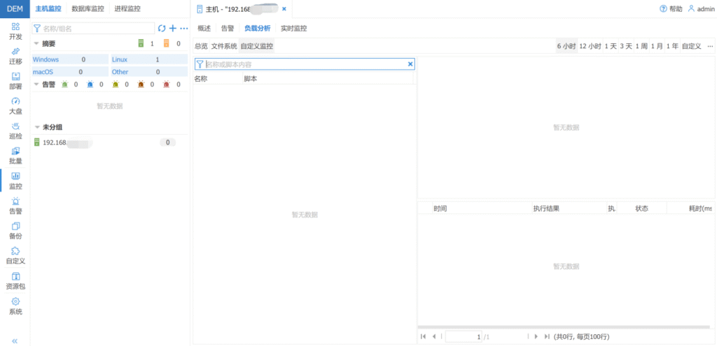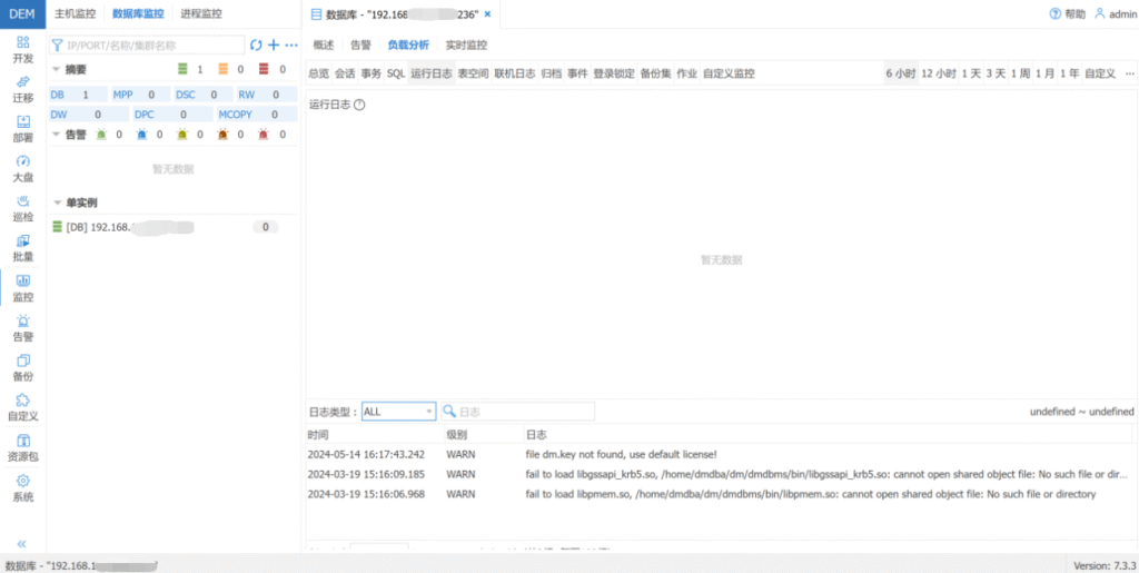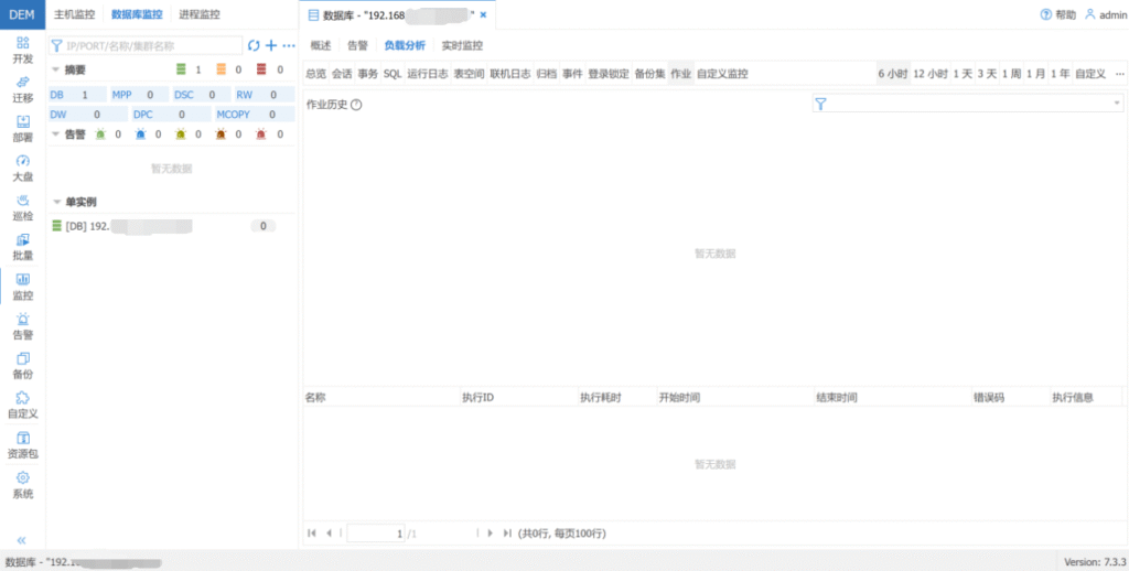- 监控与告警。本功能是 DEM 工具的核心功能。通过远程主机部署代理,能够实现对远程主机状态和远程主机上 DM 数据库实例状态的监控。DEM 监控功能不仅仅局限于单个数据库实例,还能够对数据库集群(MPP、RAC、数据守护等)进行监控和管理。