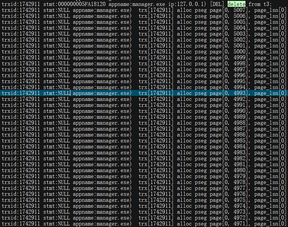 当出现大事务时,log_commit日志中一定会出现大量分配回滚段的信息:而当大事务执行完并commit后,经过