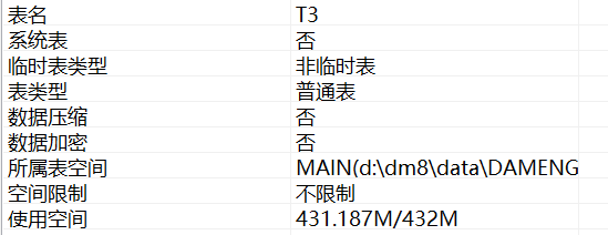 (2)然后查看以下测试表T3占用空间情况:
