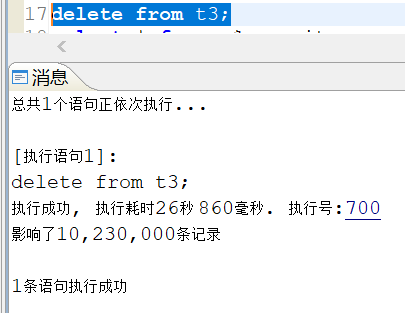 (3)执行delete操作,删除10,230,000条记录