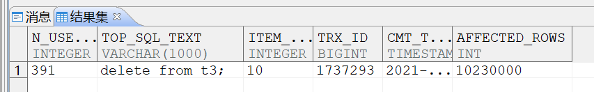 在做增删改查操作过程中,V$PSEG_ITEMS使用到的页数是动态在增加的,但是对应的NTH_ITEM必须在此事务提交后才能在V$PSEG_COMMIT_TRX中捕获到,而需要找到对应这个耗费回滚段空间的SQL必须先获取到对应的TRX_ID,才能在V$SQL_HISTORY或LOG_COMMIT日志中找到对应SQL,故在大事务执行过程中无法抓到对应SQL操作,只要当大事务提交后才能抓到对应SQL以及它使用过的ROLL空间大小;