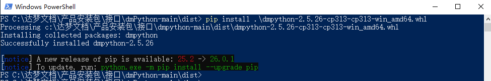 PS C:\dmPython-main\dist> pip install .\dmpython-2.5.26-cp313-cp313-win_amd64.whl